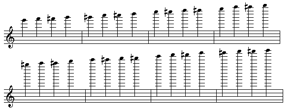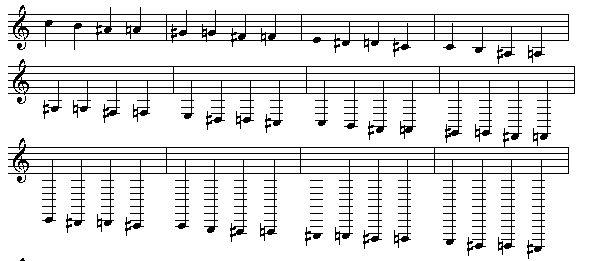 Wiedergabe mit 16 Tönen pro Sekunde: tonleiter16.mid , entspricht einer Frequenzunschärfe von 2,6 Hz.