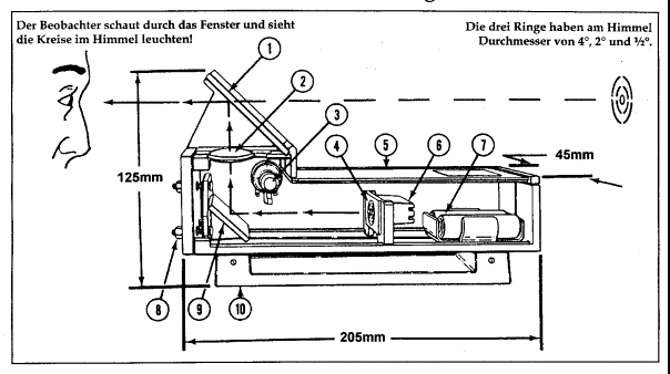 Eine ähnliche Zieleinrichtung ist für Teleskope der Amateurastronomen gedacht: TELRAD ([2]). Folgendes Bild ist ein Auszug aus der Bedienungsanleitung: